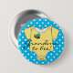 Ce bouton arrière adorable d'insigne ou de goupille indique tous vos invités de baby shower "que je suis la grand-maman à être". Arrière - plan bleu et blanc lumineux de pois avec un truc jaune d'équipement de T-shirt de pullover d'onsie de bébé, et une abeille mignonne. Customisez cet insigne pour tous les parents de famille. Perfectionnez pour la soeur, la tante, l'arrière grand-mère, la mère de Dieu et la maman. Faites un pour chacun. Cette image est disponible aux invitations de baby shower, étiquettes de adresse, autocollants, merci les cartes, le livre d'invité et les sacs fourre-tout. Veuillez visiter mon magasin "la princesse de Hungarican" chez zazzle.com/hungaricanprincess* et regardez dans mon "oh département de catégorie de bébé".