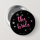 Lancez la fête avec ces boutons amusants "Disco EVE" en argent et rose scintillants sur fond noir. La typographie accrocheuse "la mariée" est accentuée par des étoiles. Ajoutez la date de votre événement en utilisant le modèle fourni. Recherchez ID925 pour voir d'autres produits de la collection tendance.