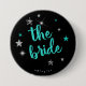 Lancez la fête avec ces boutons amusants "Disco Bachelorette" en argent scintillant et sarcelle sur fond noir. La typographie "la mariée" qui attire l'œil est accentuée par des étoiles. Ajoutez la date de votre événement en utilisant le modèle fourni. Recherchez ID925 pour voir d'autres produits de la collection tendance.