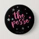 Lancez la fête avec ces boutons amusants "Disco Bachelorette" en argent et rose scintillant sur fond noir. La typographie accrocheuse "the posse" est accentuée par des étoiles. Ajoutez la date de votre événement en utilisant le modèle fourni. Recherchez ID925 pour voir d'autres produits de la collection tendance.