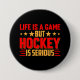 La vie est un jeu mais le hockey est sérieux rouge et or texte bouton hockey.