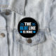 Bouton Ligne Bleue Hockey avec des rondelles bleues et des bâtons de hockey avec texte blanc et bleu qui dit La Ligne Bleue est la mienne.