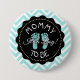 Bouton de baby shower bébé à motif chevron turquoise pour la maman à être. Turquoise et noir.