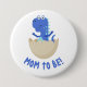 Jolie caricature d'un dinosaure bleu hachant d'un oeuf avec le texte qui dit : "Maman va être !"