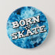 Bouton cool skateboarder avec une belle aquarelle bleue arrière - plan avec le libellé "Born to skate" dans une police graffiti moderne blanche.