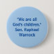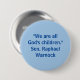 Épingle à boutons inspirée du discours prononcé par le Sénateur Raphael Warnock à la Convention Démocratique de 2024. Il dit : "Nous sommes tous les enfants de Dieu." Montre ici en lettres bleu foncé avec un arrière - plan bleu clair.