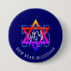 Rosh Hashanah 5785, un bouton juif du Nouvel An avec un TEXTE PERSONNALISABLE, montrant une étoile colorée de David avec 5785 (Nouvel An hébreu pour 2025) et le mot, HEY dans la typographie de script blanc. L'arrière - plan est bleu nuit. En bas, il y a le TEXTE PERSONNALISABLE qui dit "Bénédictions du Nouvel An", que vous pouvez remplacer par un message PERSONNALISÉ ou ajouter votre ou vos nom(s). TOUT TEXTE EST PERSONNALISABLE, vous pouvez donc modifier ceci pour N'IMPORTE QUELLE ANNÉE. Choisissez parmi une large sélection de cartes à thème juif, vêtements, cadeaux et fournitures de fête de Berean Designs.