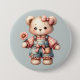 Badge Rond 7,6 Cm Pastel Teddy Bear Holding Flower Wear Overalls