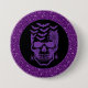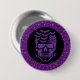 La broche du bouton d'Halloween est affichée avec une impression crâne éffrayante sur un arrière - plan couleur violet de parties scintillant fausse. Customisez cet objet ou achetez tel quel. Image sous licence
