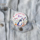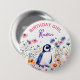 Un mignon pingouin entouré de fleurs rose, bleu, orange et violet aquarelle illustration fête d'anniversaire fille personnalisée bouton fille d'anniversaire.