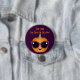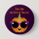 Perfect for anyone who is too cool to trick-or-treat, this Halloween themed button features a whimsical graphic pumpkin wearing retro cat style purple sunglasses and easy to customize text.