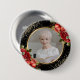 Elegant black and gold floral photo button featuring red roses and gold confetti.