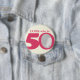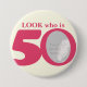 Célébrez un cinquantième anniversaire avec ce regard d'amusement qui est insigne/bouton de 50 photos. Personnalisez cet insigne d'âge avec une photographie de la fille d'anniversaire. Grande idée pour ajouter de l'amusement à une fête d'anniversaire. Peut être employé pour montrer des photos de bébé ou d'autres photos d'amusement ou embarrassantes sur vos années de filles d'anniversaire ciquantième. Conception exclusive de Sarah Trett.