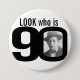 Célébrez un quatre-vingt-dixième anniversaire avec ce regard d'amusement qui est insigne/bouton de 90 photos. Personnalisez cet insigne d'âge avec une photographie du garçon ou de la fille d'anniversaire. Grande idée pour ajouter de l'amusement à une fête d'anniversaire. Peut être employé pour montrer des photos de bébé ou d'autres photos d'amusement ou embarrassantes sur vos années quatre-vingtième de filles ou de garçons d'anniversaire. Conception exclusive de Sarah Trett.