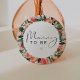 Cette broche à boutons comporte des pêches à aquarelle et une police manuscrite mignonne avec le dicton "maman à être". Ce bouton neutre est l'accessoire parfait pour votre petit baby shower de pêche ou votre soirée révélatrice de genre.