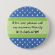 Un enfant qui est perdu peut être trop dérangé pour se rappeler votre phonenumber, particulièrement votre nombre de portable ! Mettez un de ces boutons sur vos T-shirts d'enfants et les vestes et si elles sont perdues quelqu'un peuvent rapidement demander votre numéro de portable et vous trouver.