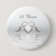 Bouton Pinback avec ma conception originale de deux dauphins et un coeur d'argent sur les eaux brillantes. Le texte personnalisable dit "25 ans".