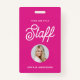 Ce badge d'identification de société dynamique et attrayant pour votre personnel est beaucoup plus sur la tendance et coloré que n'importe quel badge d'identification ancienne! Le design rose vif est doté d'un grand script rétro blanc et audacieux, avec place pour la photo, le nom et le titre de votre employé. Ce badge est suffisamment à jour pour votre personnel de divertissement ou d'événements musicaux ou de concert, de sécurité, d'artistes, de vidéo et de créateurs de contenu.