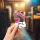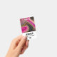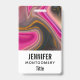 Un badge avec un design abstrait au look groovy. Les couleurs rose et noir se mélangent et se mêlent dans un mouvement tourbillonnant. Paillettes de fausse brillance dorée entre les couches.