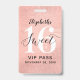 Une façon intelligente d'invitation vos invités à votre douce fête de 16 ans. Ces invitations de badge de laissez-passer VIP 16 en or doux rose personnalisé sont sûr d'impressionner vos invités. Le design présente une conception de feuille d'or rose avec une police de script manuscrite moderne. Personnalisez facilement le dos de ce modèle pour votre fête d'anniversaire de sweet sixteen. Les dessins sont des illustrations et des graphiques imprimés à plat. Aucune feuille réelle n'est utilisée. Conçu pour vous par Blackberry Boulevard.