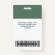 Personnalisez facilement ces badges de nom d'entreprise sans photo, avec le code Qr lisible (ça marche toujours!) et le code Bar et le logo de grande entreprise. Cette société id maker a un design de marque de nom d'entreprise simple dans des couleurs vert et blanc sauge écologique biologique entièrement personnalisable en tailles avant et arrière, sans-serif polices de base et moderne et un look professionnel et clair, parfait pour les employés de petite entreprise, patron, invités. Ces fournitures de badges d'identification d'entreprise sont disponibles avec cordon, clip métallique ou avec rétractable. Profitez de l'excellent service d'impression de badge de Zazzle! Pas de commande minimum, et plus vous achetez, plus vous économisez. Des rabais en vrac sont disponibles avec plusieurs commandes, pour différents employés aussi!