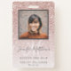 Personnalisez l'utilisation du modèle pour créer votre propre logo d'entreprise sur ce badge de salon de coiffure Rose Gold Parties scintillant et ajoutez le nom de l'employé et la photo. Vous pouvez ajouter une pièce d'identité de l'employé au verso et toute déclaration en cas de perte de renseignements. ©Elke Clarke