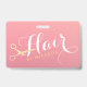 Salon des cheveux / Coiffeur / Coiffeur / Salon de beauté / Maquillage Artistes / Stylistes / Wedding planners / Planificateurs d'événements / Consultants / Boutique-propriétaires / Fashionistas Nom personnalisé Tags & Badges. Ciseaux d'or Faux modernes sur Arrière - plan de dégradé rose.
