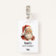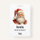 Name badge with a cute retro style illustration. Santa Claus with a bushy white beard wearing his traditional red suit.