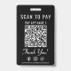 Soyez payé partout où vous faites des affaires avec ce badge élégant et professionnel de codes QR de paiement Scan to Pay 2 noir. Ce badge léger permet aux clients d'envoyer un paiement instantanément avec un simple scan -- parfait pour les services mobiles, les événements chargés et le paiement en déplacement. La mise en page minimaliste présente une écriture blanche moderne, un appel à l'action gras pour scanner et payer, des codes QR clairement centrés de chaque côté, un message amical « Merci » et vos identifiants de réseaux sociaux Facebook, Instagram et TikTok. Idéal pour les vendeurs, les artistes, les barmen, les coiffeurs, les maquilleurs, les chauffeurs-livreurs, les vendeurs de marché et le personnel d'événement, ce badge de paiement portable maintient le paiement rapide, sans contact et pratique -- aucun espace de comptoir nécessaire.