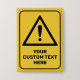 Signal d'avertissement jaune en forme de triangle avec point d'exclamation. Couleur arrière - plan personnalisée. Texte personnalisé.