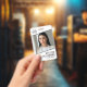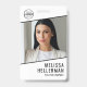 This clean vertical ID badge features a crisp white background with simple black line accents for a modern touch. Your company logo sits at the top left, and your name and job title appear in classic black fonts in the bottom right. Your photo is centered to keep the layout professional and easy to read. The back includes space for company return info. Fully customizable for a polished, minimal, high-contrast design.