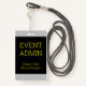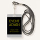 Cette conception minimaliste de badge comporte le message "EVENT ADMIN". Un badge comme celui-ci pourrait peut-être être utilisé pour indiquer que le porteur est un représentant officiel à un événement. [~Z0000307]