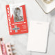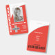 Un design minimaliste et simple avec un arrière-plan de couleur rouge et blanc, photo, code-barres et modèle de logo. Personnalisez facilement ce badge à votre marque. -conçu avec ❤ par Zaubershirts-