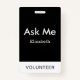 badge simple noir personnalisé "Ask Me" pour les bénévoles, les enseignants, les guides, les organisateurs d'événements spéciaux, tels que les mariages, les foires artisanales, les salons de la maison et du jardin, les événements caritatifs, les réunions d'affaires et d'entreprise. "Demandez-moi" et Nom sont une couleur d'ivoire. Le titre "Volontaire" est gris foncé.