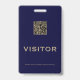 Gardez vos visiteurs et invités facilement identifiés avec ce simple badge de visiteur QR personnalisable. Le design bleu et or comporte un code QR personnalisable et un texte qui dit "Visiteur" dans une police classique. Le code QR facilite l'accès aux informations importantes sur votre installation ou événement. Le texte en bas rappelle aux visiteurs de retourner le badge avant de partir. Ce badge est parfait pour les entreprises, les hôpitaux, les écoles, les musées, les attractions, etc.