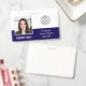 Personnalisez ces badges horizontaux avec une photo et le nom d'un employé, ainsi qu'un champ de modèle pour un texte personnalisé supplémentaire pour le numéro d'identification de l'employé, le rôle ou le titre, l'emplacement ou d'autres données clés. Ajoutez votre logo en haut. Champ de texte personnalisé supplémentaire situé au dos pour les informations de retour ou d'autres détails.