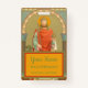 Sur cette image réalisée dans le style Beuron de l'art bénédictin, St. Henri II (972-1024), le Saint Empereur Romain porte des regalia impériales - une couronne, un manteau rouge vermillon bordé d'hermine sur une robe turquoise, et porte un sceptre et orbe symbolisant son pouvoir temporel. Sa couronne, le Reichskrone, ou Couronne impériale du Saint Empire romain, est une couronne distinctive composée de huit plaques métalliques charnières en forme d'arc surmontées d'une croix à l'avant avec un haut cerceau reliant l'avant de la couronne à son arrière. Un laïc et non un religieux consacré, cependant, St. Henry était connu pour sa sainteté personnelle pratiquant les valeurs bénédictines comme un Oblat. St. Henry est le patron des Oblats bénédictins ainsi que des gens rejetés par les ordres religieux, les handicapés physiques et les couples sans enfants. + Fête : 13 juillet + Crédit d'image (BBS 10) : Image antique de St. Henry II, Empereur, OSB [Ordre de Saint Benoît], initialement publiée en chromolithographie par B. Kühlen, Mönchengladbach, Allemagne (série Benedictina, Schola art. Beuron., non numérotée), fin 19e-début 20 siècle, de la collection privée de l'architecte d'éphémère religieux.