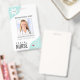Badge photo d'employé médical avec un stéthoscope et un motif de cœur. L'exemple montre le titre d'INFIRMIÈRE DE TRANSIT mais peut être modifié pour n'importe quel poste du personnel. Incluez un logo ou supprimez l'image exemple. CHANGEMENT DE COULEUR DE FOND : La couleur de fond vert menthe peut être modifiée en cliquant sur l'onglet PERSONNALISER DAVANTAGE. Contactez le concepteur si vous souhaitez que ce design soit modifié ou si vous avez besoin d'aide pour la couleur.