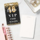 Un badge VIP moderne, élégant et glamour pour une fête de 16 ans Sweet. Un arrière - plan noir décoré de faux confettis d'or. Avec le texte : VIP. Personnalisez et ajoutez le nom et les détails du parti.