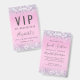 Une invitation unique Sweet 16 anniversaire qui sert également de badge pour les invités à porter à la fête et garder comme une faveur de fête souvenir. Ce joli design présente un holographe brillant violet, rose et argent faux confetti parties scintillant bordé contre un arrière - plan rose, son nom dans un script gris doux tendance et "VIP All Access Pass" sur le haut. Au contraire, personnalisez l'invitation de fête d'anniversaire.