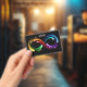 Badge Symbole de l'infini de comètes arc-en-ciel
