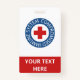 Badge du système immunitaire compromis en rouge, blanc et bleu avec des polices modernes et une croix rouge.
