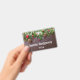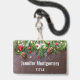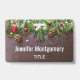 Un nom avec une photo rustique d'une table en bois marron avec des pinecones, des aiguilles de pin, de la neige et des ornements de Noël. Festif et adorable.