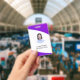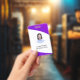 Nettoyer l'insigne personnalisé des employés avec photo et texte dans une présentation moderne aux couleurs violet, indigo, violet