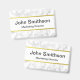Ce badge de nom en marbre blanc comporte un texte noir et une ligne dorée fausse au-dessus et en dessous du texte. Personnalisez-le avec votre texte tel que votre nom et titre.