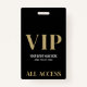 Tous accéder Elegant Black Gold Special Event Badge VIP. Idéal pour les défilés de mode, les concerts, les grands événements spéciaux comme les conférences, les conférenciers, et peut même travailler pour une fête d'anniversaire ou toute autre fête où vous voulez que vos invités se sentent spéciaux. Un look simple, moderne mais élégant. En bas se trouve une police serif audacieuse mélangée à de la typographie simple, avec VIP, le nom de l'événement, la date et 'All Access'. Vous pouvez modifier toutes les informations textuelles et les couleurs de ce badge à partir de la coloration actuelle en noir et or.