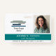 Carte d'identité horizontale de l'employé personnalisée avec photo et logo, nom et titre, numéro de badge et date d'expiration. Ajoutez le nom et le titre en blanc sur turquoise.