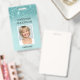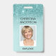 Girly Aqua Turquoise Blue Professional Entreprise Nom du travail, photo et titre du travail Faux Parties scintillant et Sparkle Ombre ID Photo Insigne commercial vertical. Cette conception est simple et facile à utiliser en changeant votre prénom et votre nom ainsi que votre titre de travail et votre plan de tête d'entreprise.