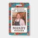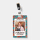 Customisez et personnalisez avec votre nom d'employé et votre nom d'entreprise. Ce joli badge d'employé à motifs floraux turquoises et rouges est élégant, audacieux et coloré.
