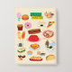 Une illustration vectorielle de différentes variétés de nourriture telles que barbe à papa, hamburger, crevettes frites, gyoza, pizza, frites, hot-dog, beignet, corn dogs, gelée, ramen, lasagne, sundae, glace, muffin, nachos, mochi, sushi, sandwich, boule de riz et taco.